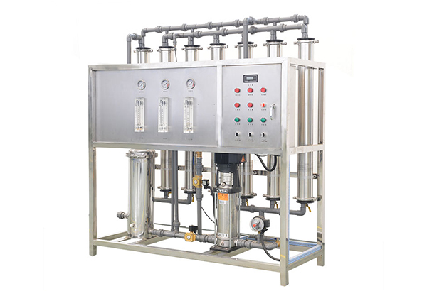 反滲透純凈水處理設備主要采用反滲透技術,該技術是當今較為新穎、節能有效的膜分離技術,在高于溶液滲透壓的作用下,依據其它物質不能透過半透膜將這些物質和水分離開,由于反滲透膜的孔徑很小,可以有效去除水中的膠體、微生物、有機物等,制水效果鮮明。